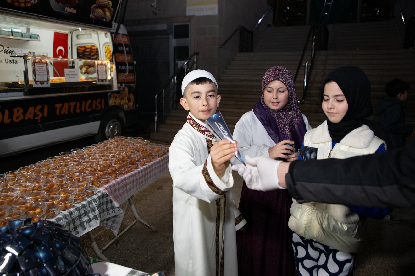 Programda; Kocatepe Camii İmam Hatibi Hafız Furkan Tıraşçı, Tasavvuf Musikisi Saanatçısı Esad Aydoğan, Kocatepe Camii Baş İmam Hatibi Mehmet Atıcı, Hacıbayram Camii eski İmam Hatibi İbrahim Meletlioğlu, Kur’an okuma yarışması dünya birincisi Hafız Ali Tel, Ankara Türk Tasavvuf Musikisi Topluluğu ve Mevlidhan Mustafa Akbaş yer aldı. Okunan Kur’an-ı Kerim, ilahiler ve mevlid ile camiyi dolduran vatandaşlar duygu dolu anlar yaşadı. Ellerin semaya açıldığı gecede hocaların eşliğinde dualar edildi. Programın ardından vatandaşlara lokma ve şeker ikramında bulunuldu. Şafak Camii’nin yanı sıra ilçe genelindeki birçok camide de vatandaşlara lokma ve şeker dağıtımı yapıldı.