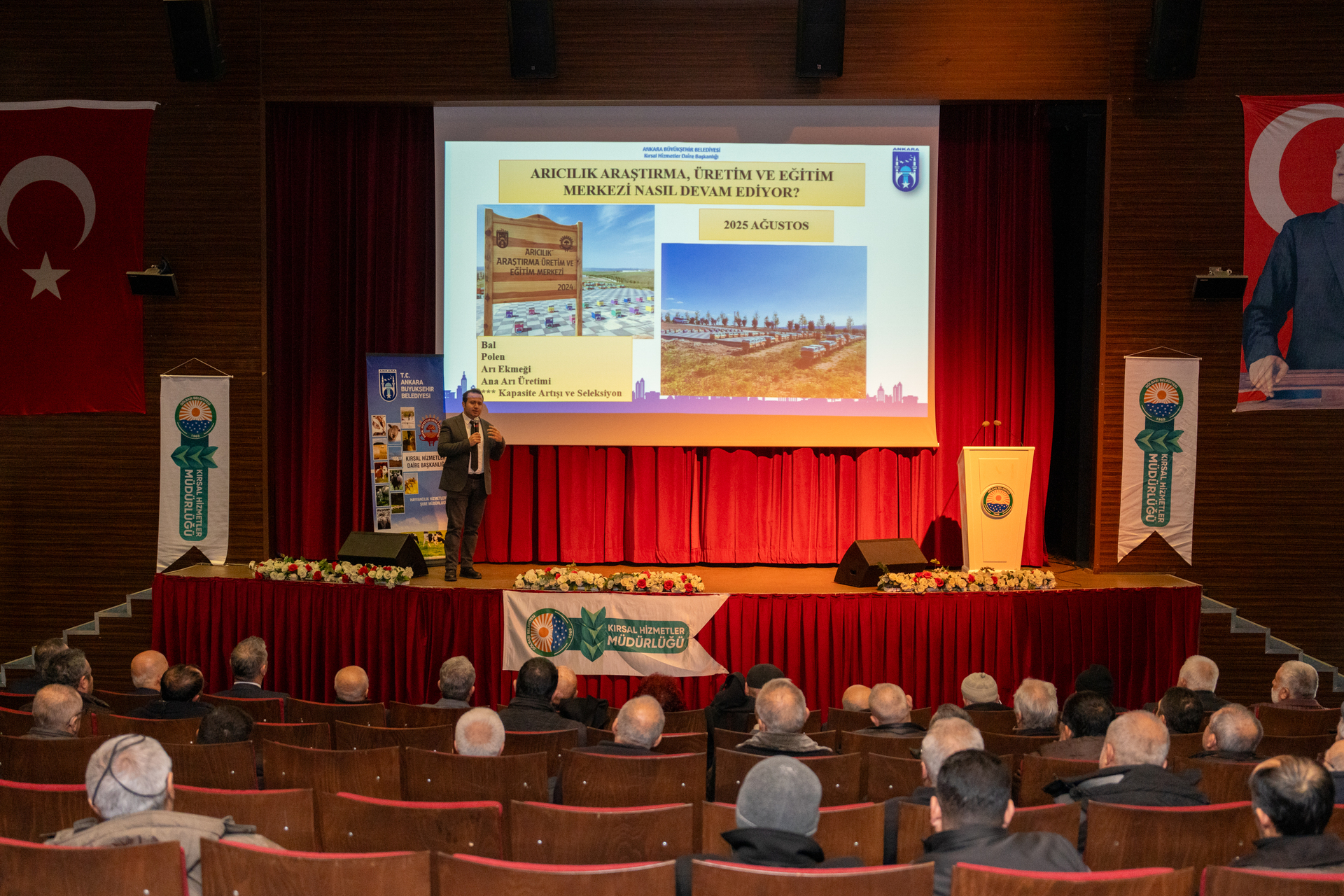 Programda ABB Kırsal Hizmetler Daire Başkanlığı Ziraat Yüksek Mühendisi Suat Musabeseoğlu tarafından; arıcılıkla ilgili temel bilgiler, koloni yönetimi, Ankara ikliminin arılar üzerindeki fizyolojik etkileri ve riskler, termoregülasyon maliyetinin artışı, erken yavru gelişimi ve üşütme riskleri, kışa girişte koloni biyolojik kapasitesinin optimizasyonu, doğal bal stoğuna dayalı enerji yönetimi, iç ortam nem ve ısı dengesi (mikroklima) kontrolü, besleme ve kontrol müdahalelerinin minimalizasyonu, ilkbahar dönemi yönetim stratejileri konuları arıcılara detaylı şekilde anlatıldı. Üreticilere ayrıca koloni sağlığının korunması ve kayıpların en aza indirilmesi için gerekli teknik bilgiler detaylı şekilde aktarıldı.