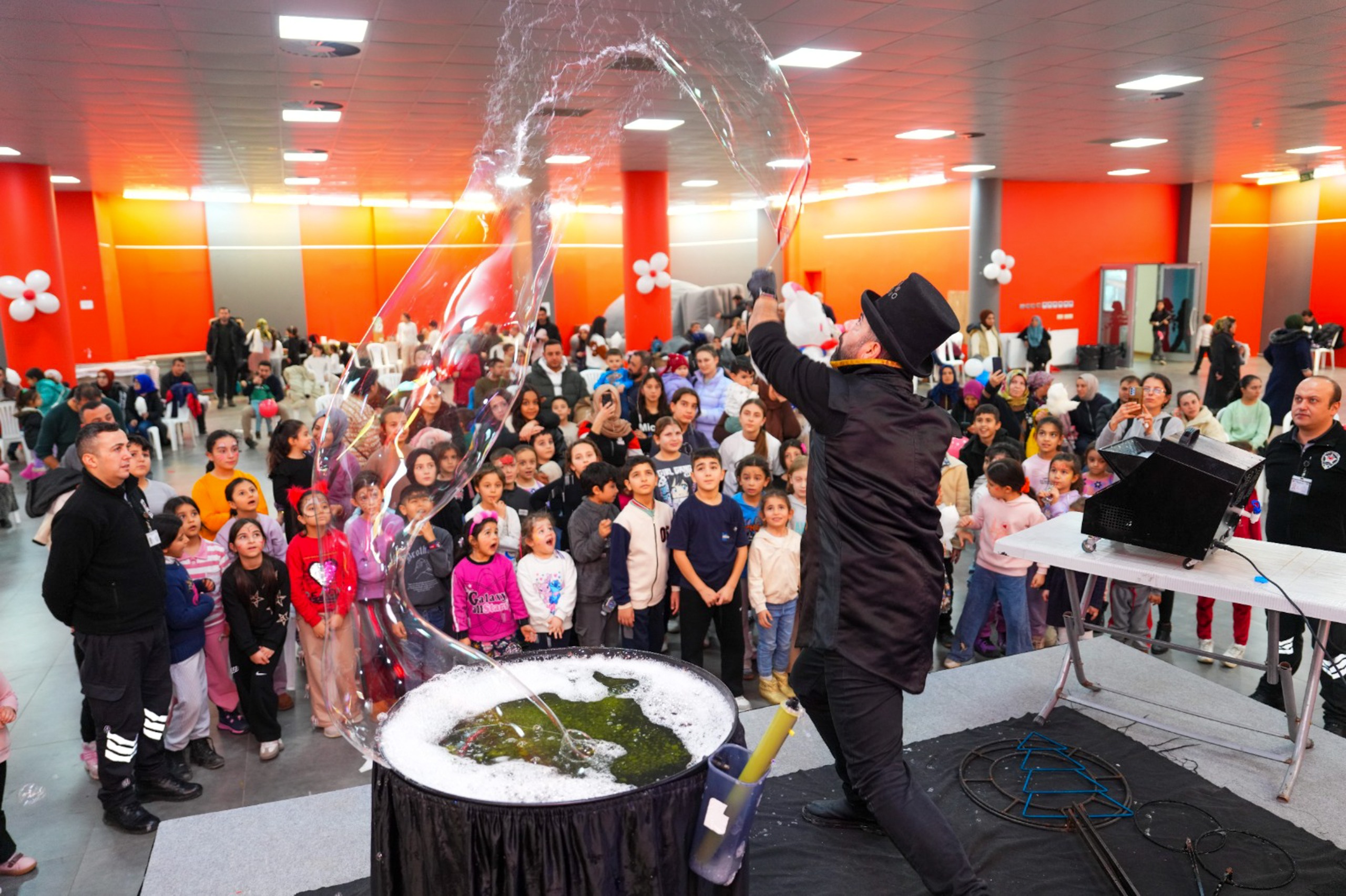 Çocuk şenliğinde sihirbaz, bilim, balon ve bubble show gösterileri, animasyonlar, jonglör ve ateş gösterileri ile maskot karşılamaları miniklere unutulmaz anlar yaşatıyor. Etkinlik alanında ayrıca çocuklara ikramlarda bulunuyor.