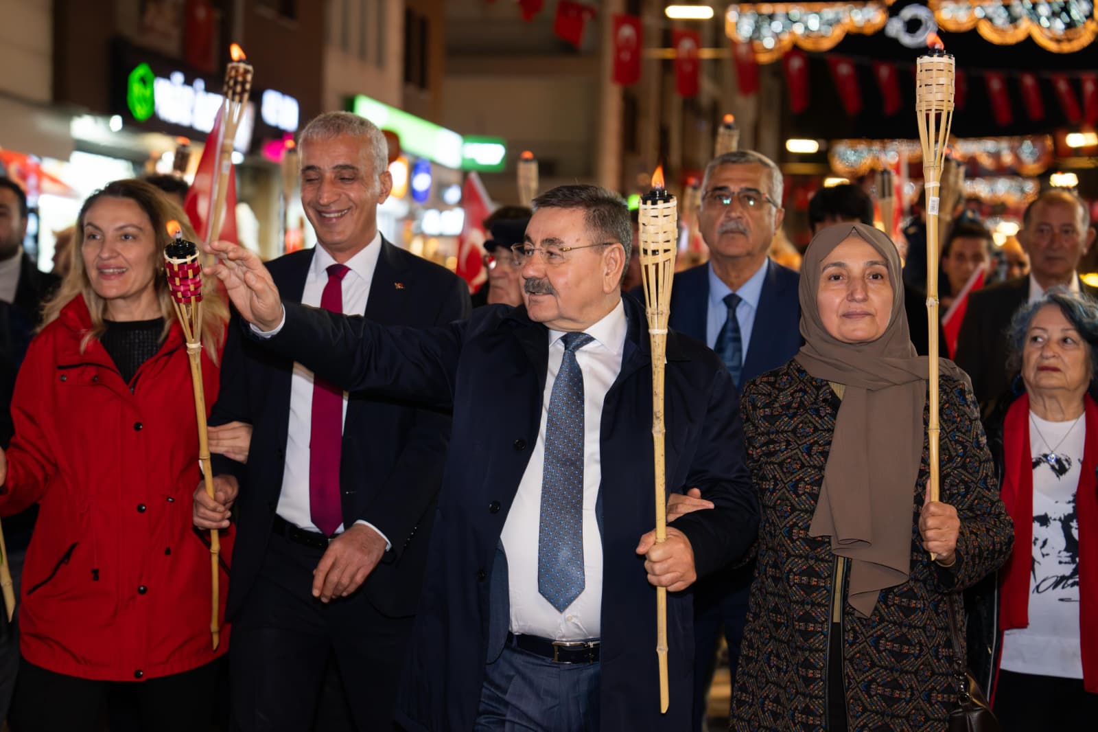 Cumhuriyet Bayramı kutlamaları kapsamında Gölbaşı Kaymakamlığı önünden başlayan Meşale Yürüyüşü, Atatürk Sahil Parkı’nda son buldu. Vatandaşların yoğun ilgi gösterdiği yürüyüşte, ellerinde Türk bayrakları ve meşalelerle yürüyen Gölbaşılılar, Cumhuriyet coşkusunu doyasıya yaşadı. Yürüyüşe, Mehteran ekibi ve Seymenler eşlik etti.