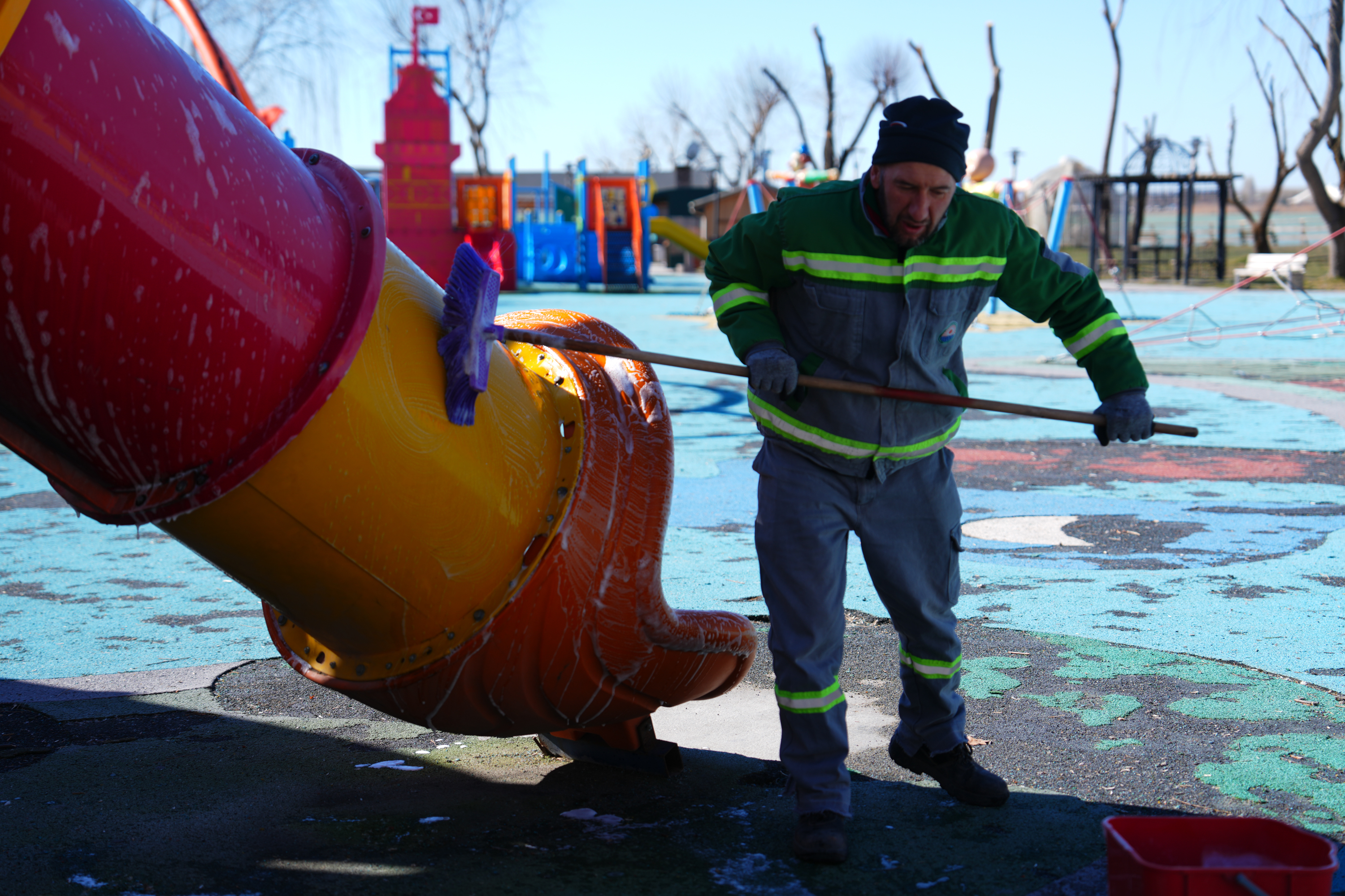 Odabaşı, “Havaların ısınmasıyla birlikte parklarımız vatandaşlarımızın en çok vakit geçirdiği alanlar haline geliyor. Özellikle çocuklarımızın güvenli ve sağlıklı ortamlarda oyun oynayabilmesi bizim için büyük önem taşıyor. Bu nedenle ekiplerimiz parklarımızda kapsamlı bir temizlik ve bakım çalışması başlattı. Oyun gruplarını tazyikli suyla yıkayarak hijyenik hale getiriyoruz, yürüyüş yollarını ve ortak kullanım alanlarını da detaylı şekilde temizliyoruz. Temizlik çalışmalarının yanı sıra ihtiyaç duyulan parklarda oyun gruplarını yeniliyor, bakım ve onarım çalışmalarını da gerçekleştiriyoruz. Amacımız Gölbaşı’nda yaşayan her vatandaşımızın daha temiz, daha güvenli ve daha yaşanabilir bir çevrede hayatını sürdürmesini sağlamak. Bu kapsamda ilçemizin dört bir yanındaki park ve yeşil alanlarda çalışmalarımız planlı şekilde devam edecek.” dedi.
