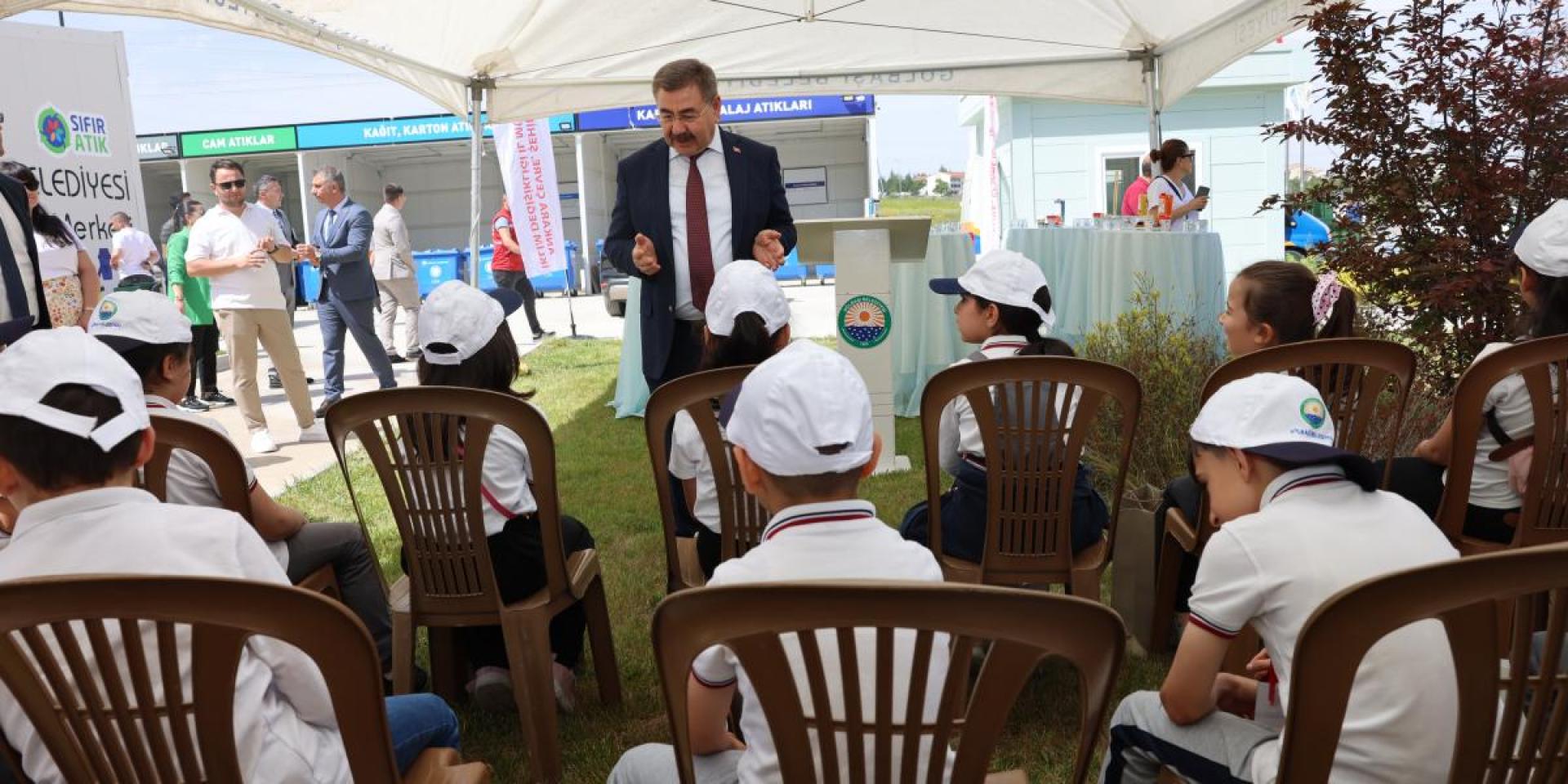 Ankara Çevre, Şehircilik ve İklim Değişikliği İl Müdürlüğü, Çevre Mühendisleri Odası, Ankara Sanayi Odası’ndan yetkililerinin de katıldığı etkinlikte, anaokulu ve ilkokul öğrencileri atık malzemelerin toplandığı bölmeleri gezdi. Gölbaşı Belediyesi Temizlik İşleri Müdürlüğü ekipleri, öğrencileri sıfır atık konusunda bilgilendirdi.