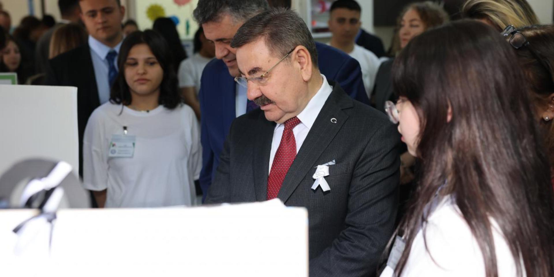 stantlardaki projeleri inceleyen Başkan Odabaşı, öğrencilerin bilimsel merak ve