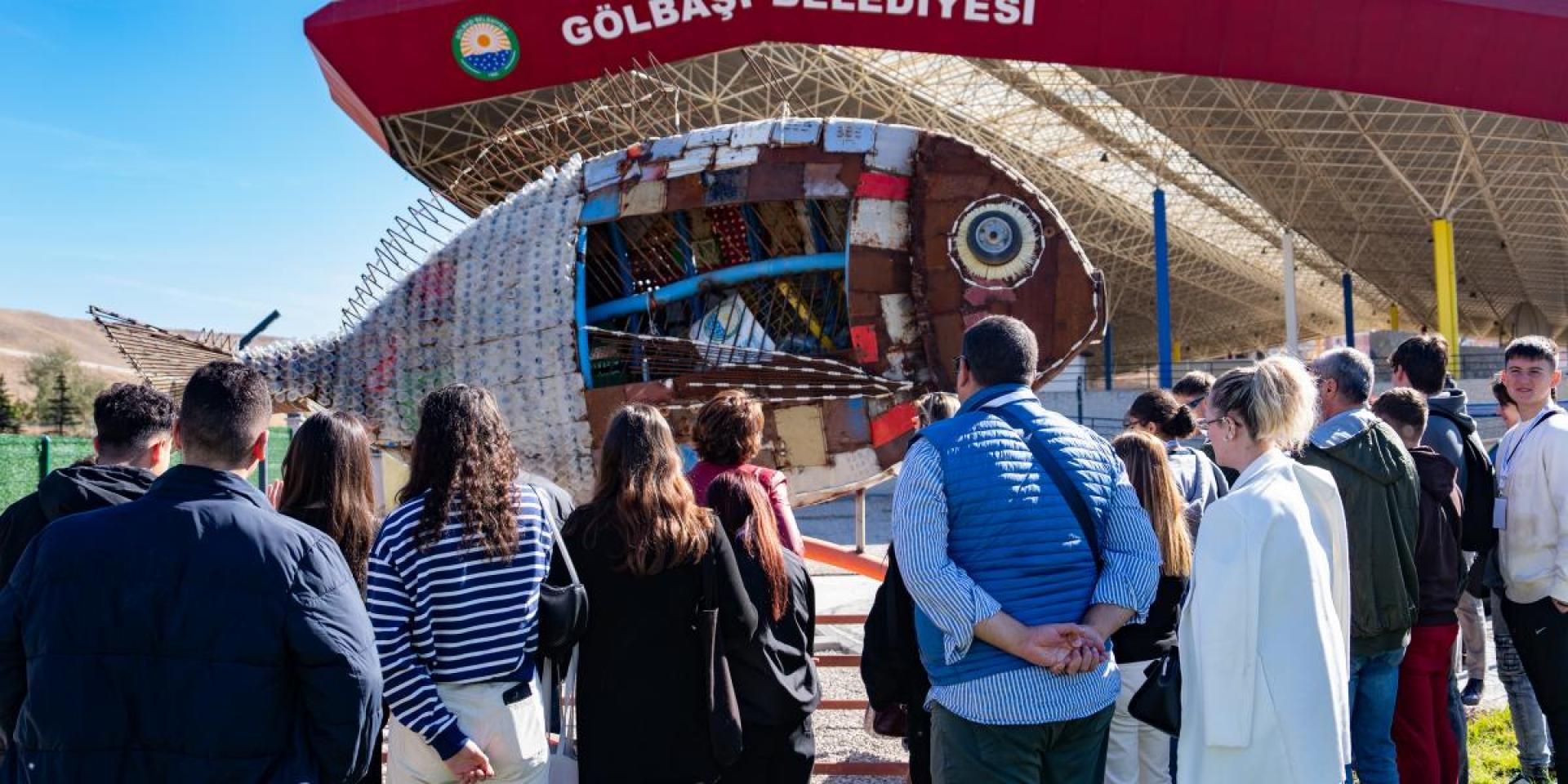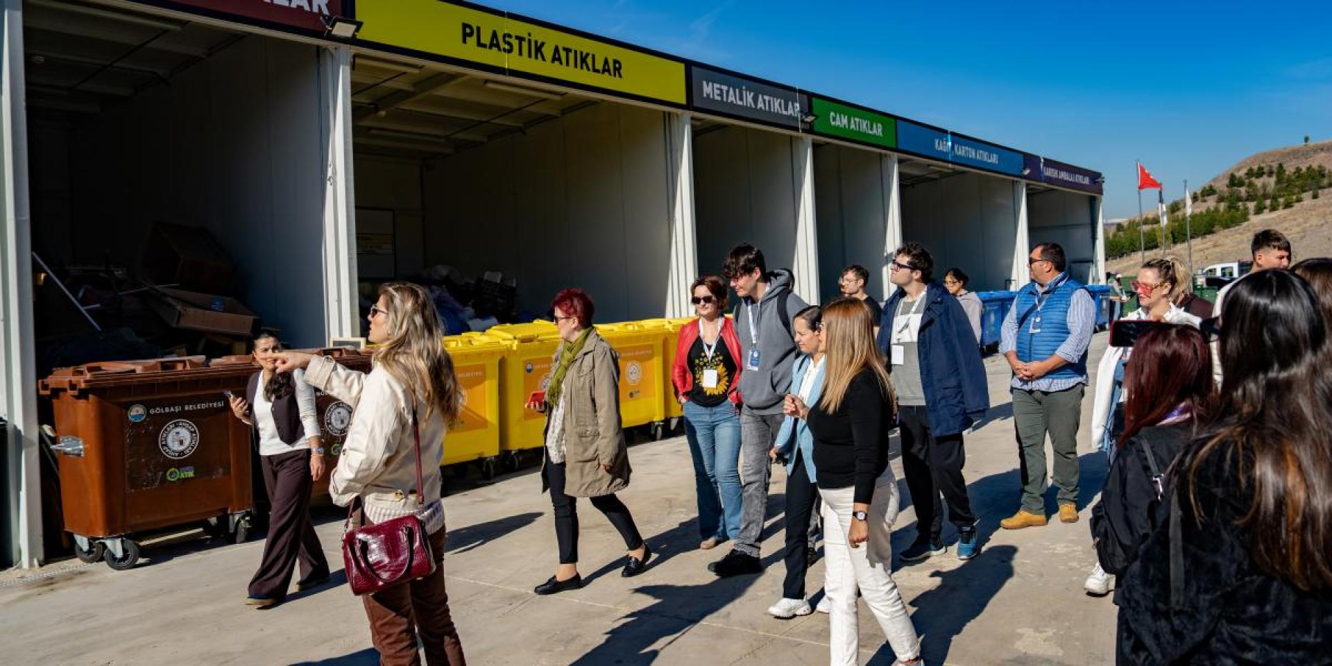 Gölbaşı Belediyesi Sıfır Atık Getirme Merkezi’ni, Çankaya Borsa İstanbul Mesleki ve Teknik Anadolu Lisesi öğrencileri, ‘Erasmus+ 210’ okul ortaklığı kapsamında; İtalya, Polonya ve Macaristan’dan gelen turizm öğrencileriyle birlikte ziyaret etti. Çevre dostu farkındalığı, yeniden kullanım, geri dönüşüm ve sıfır atık çalışmalarını içeren bir proje kapsamında merkezi gezen öğrencilere, Temizlik İşleri Müdürlüğü’nde görevli çevre mühendisleri eşlik etti. Merkezin içinde oluşturulan; civa içeren atıklar, pil atıklar, tekstil atıklar, ahşap atıklar, plastik atıklar, metalik atıklar, cam atıklar, kâğıt ve karton atıklar, karışık ambalaj atıklar, yıkıntı atıklar, evlerden kaynaklı tehlikeli maddeler, atık ilaçlar, elektrikli ve elektronik atıklar, bitkisel atık bölmelerini gezen öğrencilere çevre mühendisleri tarafından geri dönüşümle ilgili bilgiler aktarıldı. Öğrenciler, ayrıca atık malzemelerin toplandığı ve atıkların kompost makinesinde geri dönüştürüldüğü alanları gezdi.