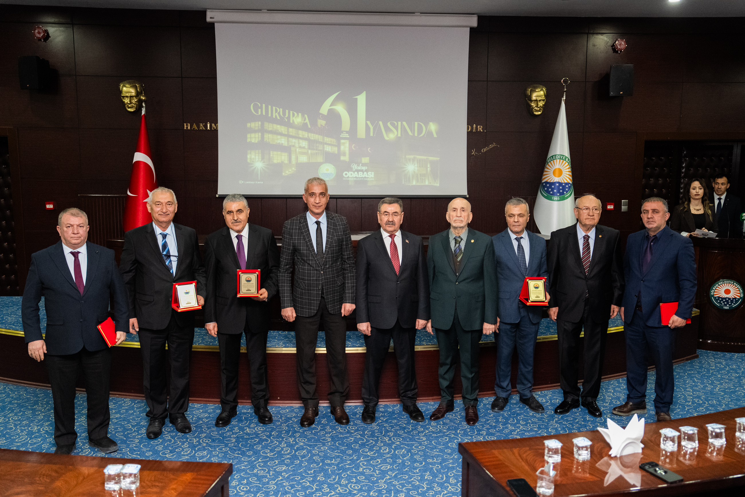 Konuşmasının ardından Başkan Odabaşı, Gölbaşı’na geçmiş dönemlerde katkı sunan eski belediye başkanları Erdal Eren ve Mümtaz Sarıtaş’a teşekkür ederek hediye takdim etti. Ayrıca, 35 yıl boyunca belediyeye hizmet eden Özcan Balcı, Gürbüz Onbaşı, Hasan Arslan, Şevket Şahin, Mustafa Erdoğan ve Erdal Karadağ’a plaket verildi.