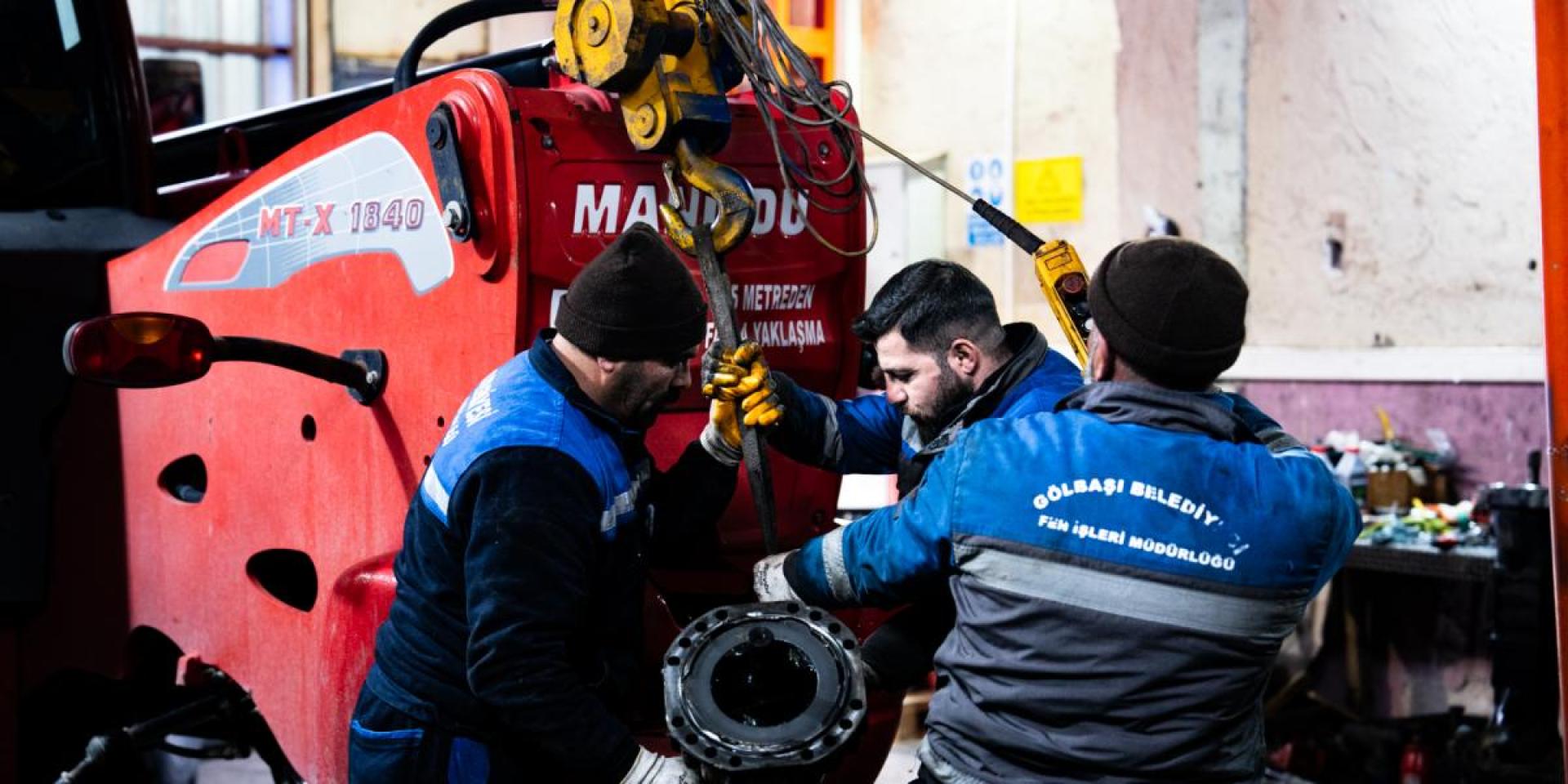 Gölbaşı Belediyesi, belediye bütçesine tasarruf sağlamak ve öz kaynakları verimli bir şekilde değerlendirmek amacıyla Fen İşleri Müdürlüğü atölyelerinde üretim, bakım ve onarım çalışmalarını aralıksız sürdürüyor. Kaynakhane atölyesi, araç tamir ve bakım atölyesi, şase ve makas onarım atölyesi, kaporta ve boya atölyesi, elektrik-elektronik atölyesi, mobilya ve ahşap atölyesi, ağır bakım atölyesi, oto lastik tamir atölyesinde belediye personeli tarafından gerçekleştirilen bu çalışmalar sayesinde maliyetler düşerken etken bir hizmet verilmesi de sağlanıyor. Müdürlük bünyesinde yürütülen çalışmalar kapsamında, ilçede kullanılan araç, ekipman ve yapı malzemelerinin üretimi, bakımı ve onarımı titizlikle gerçekleştiriliyor.