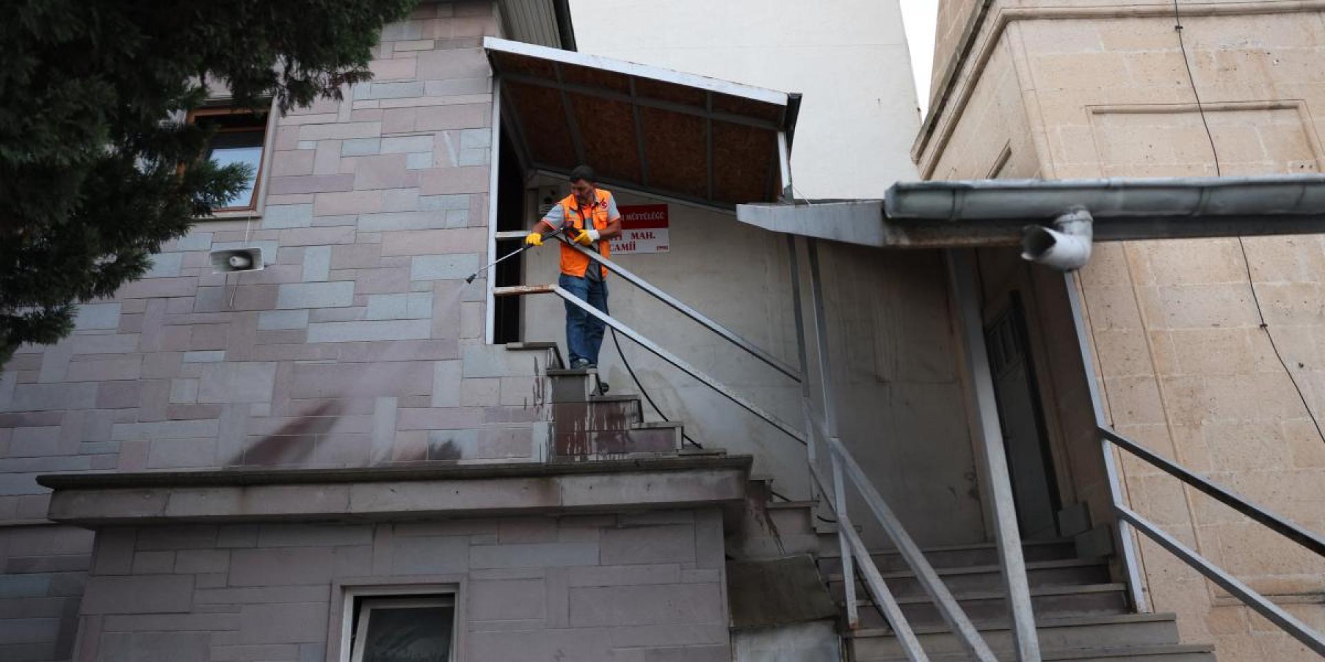 Ayrıca, cuma namazı öncesi sanayi bölgesindeki cami, süpürgelerle tertemiz yapılırak gül suyuyla yıkandı.