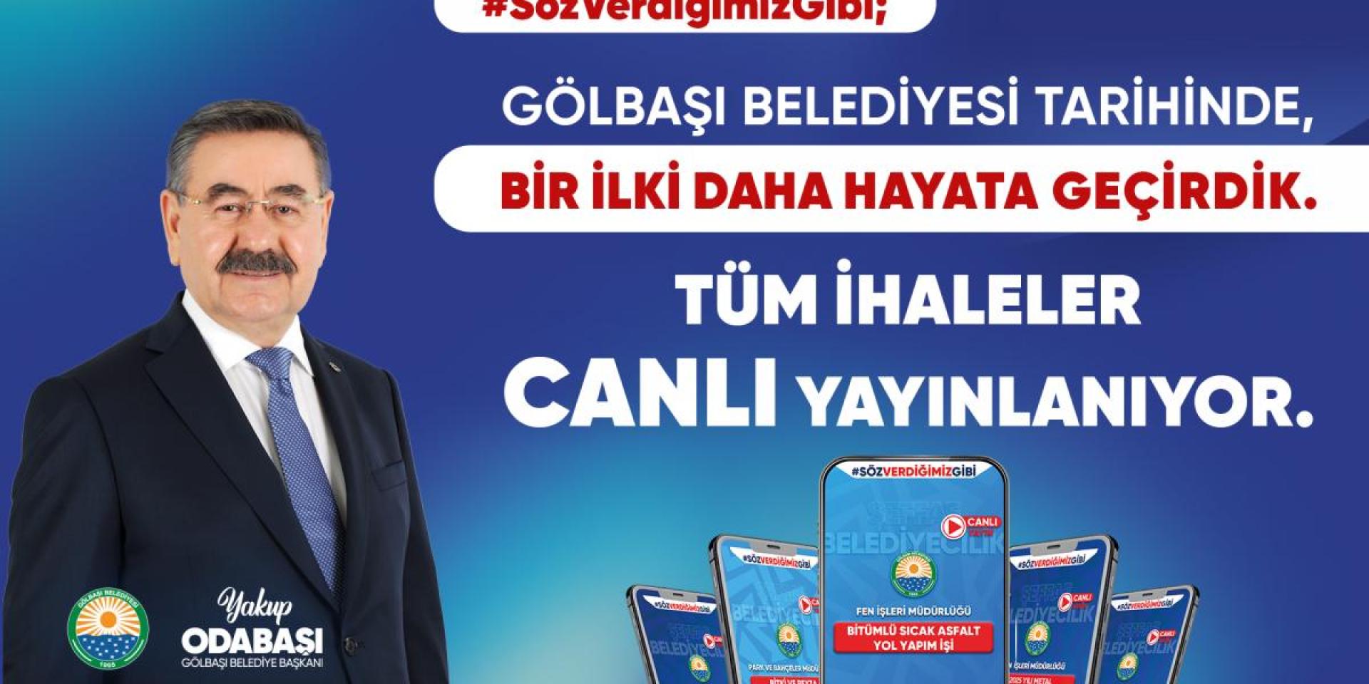 Gölbaşı Belediye Başkanı Yakup Odabaşı, seçim vaatlerinden birini daha hayata geçirdi. Gölbaşı Belediyesi tarihinde ilk kez, belediyede yapılan ihaleler şeffaflık ve hesapverebilirlik ilkesi doğrultusunda sosyal medya hesaplarından canlı yayınlanmaya başlandı. Kamu kaynaklarının etkin, verimli ve adil bir şekilde kullanılması amacıyla başlatılan bu uygulamayla, vatandaşların belediye faaliyetlerine doğrudan tanıklık edebilmesine olanak sağlandı. Sosyal medya hesaplarından yapılan canlı yayınlar vatandaşlar tarafından ilgiyle takip edildi.
