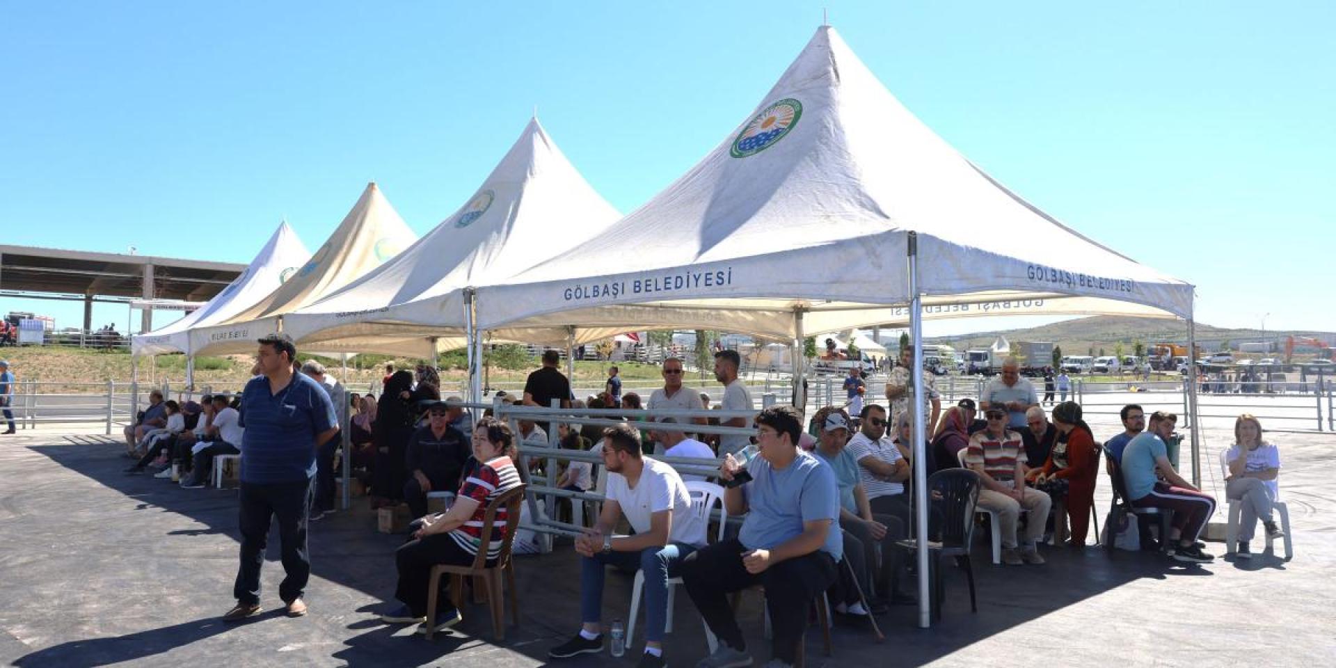 güneşten korunması için Gölbaşı Belediyesi tarafından çadırlar kuruldu.