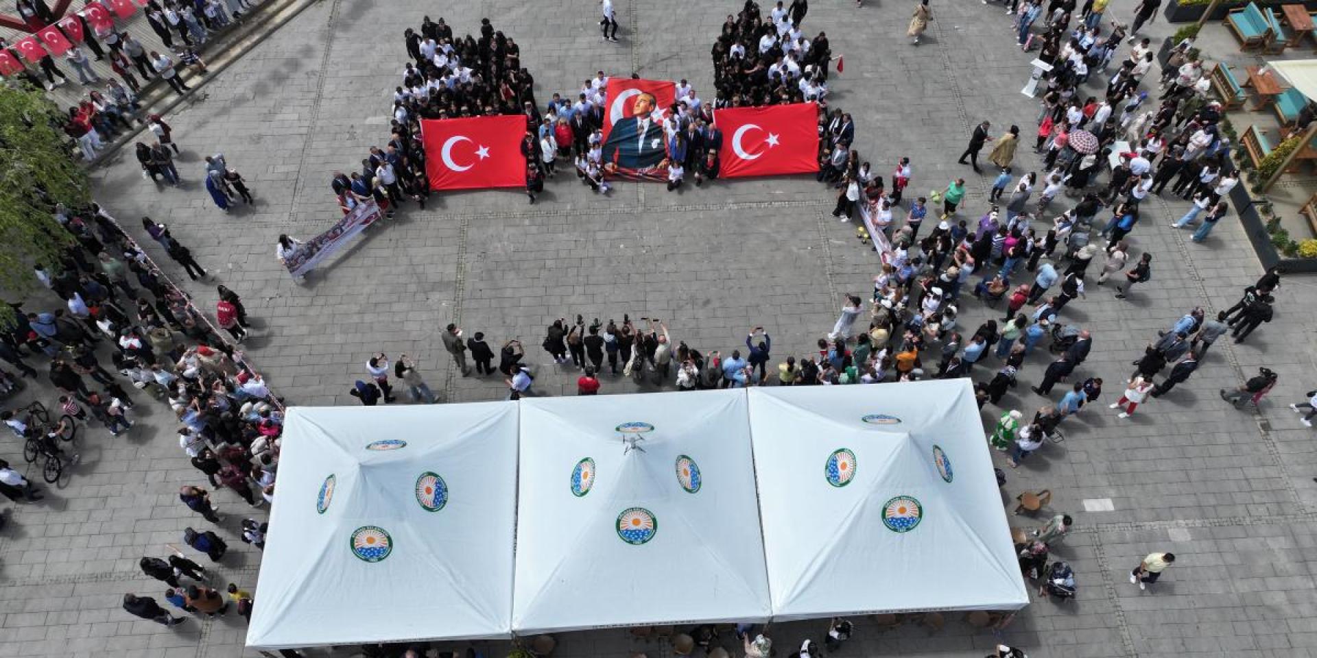 kutlamalar öğrenciler ve antrenörler tarafından açılan Türk bayrağı ve Atatürk