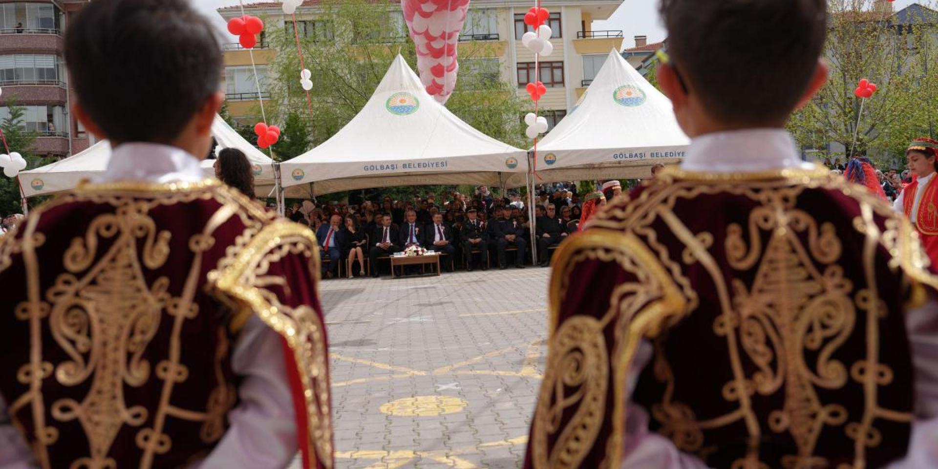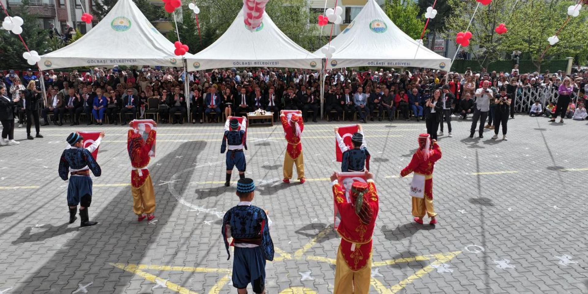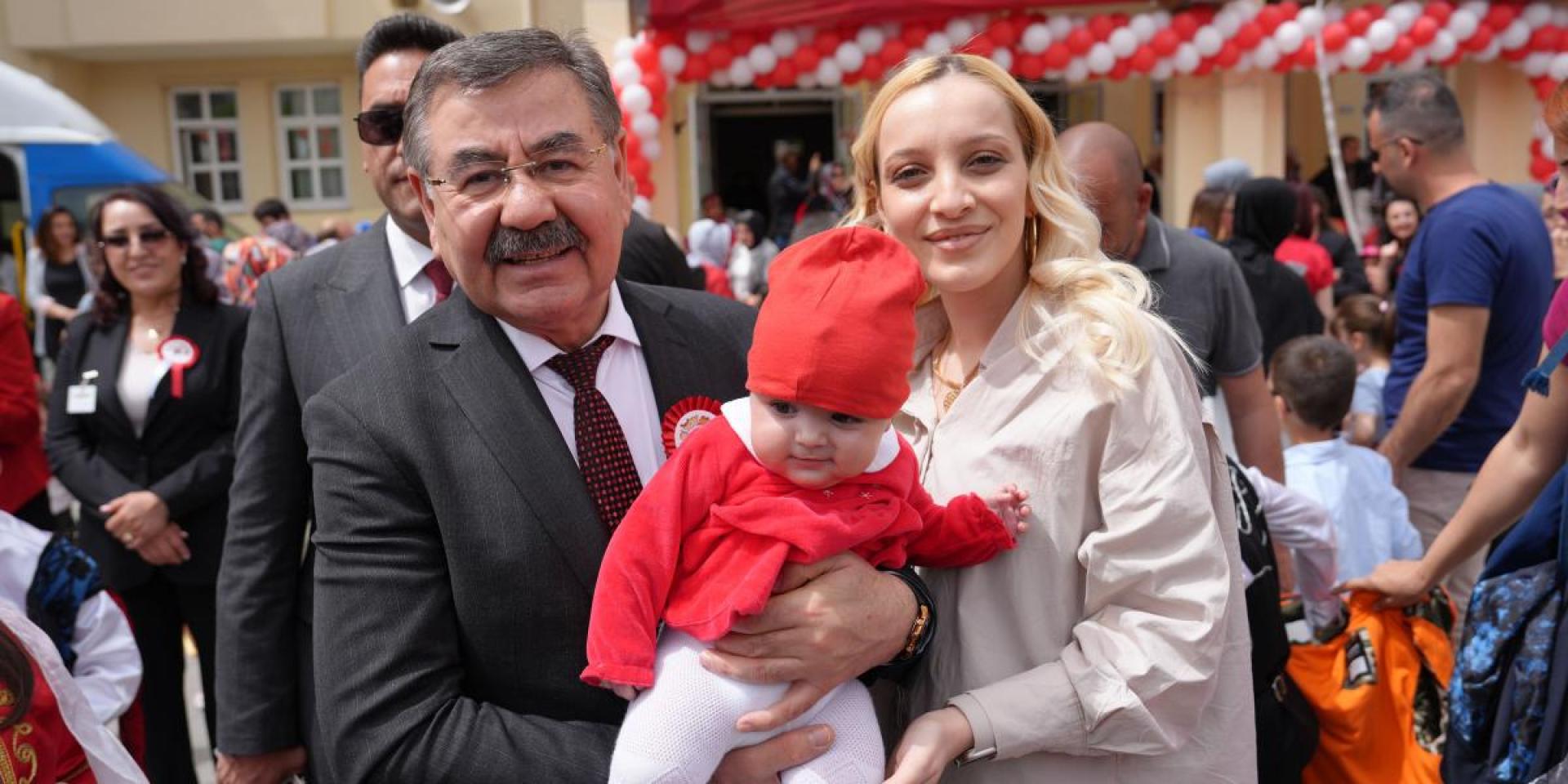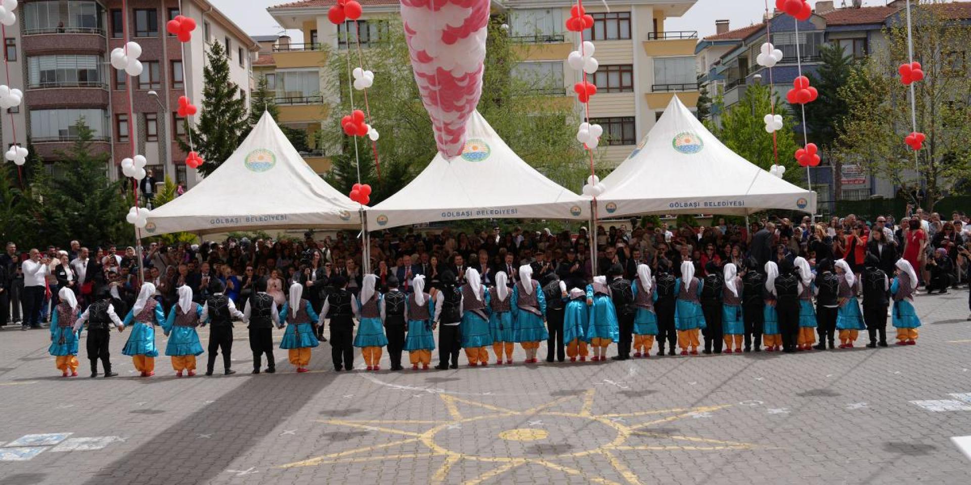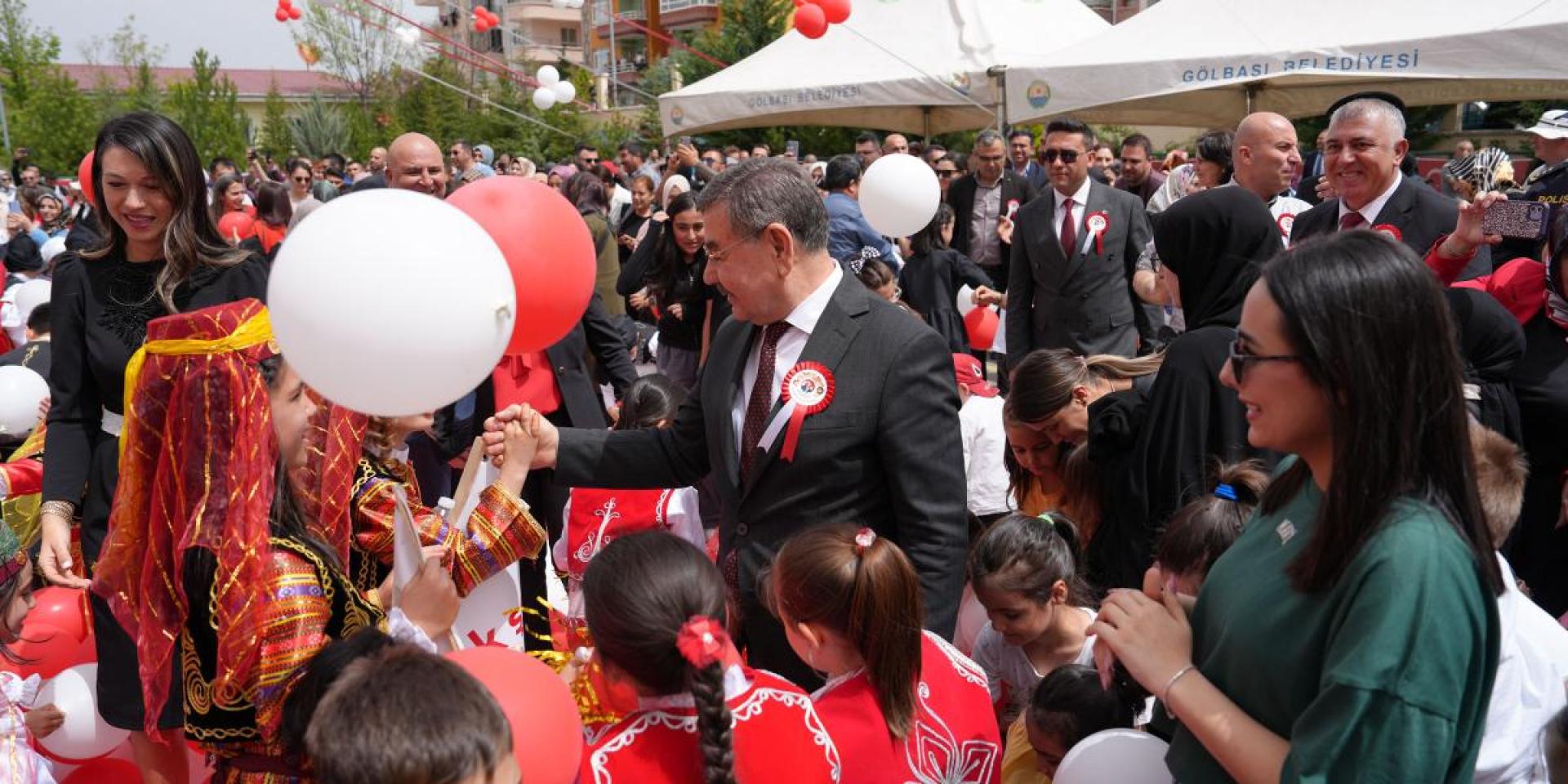 katılan Gölbaşı Belediye Başkanı Yakup Odabaşı, çocuklar ve aileleri ile tek