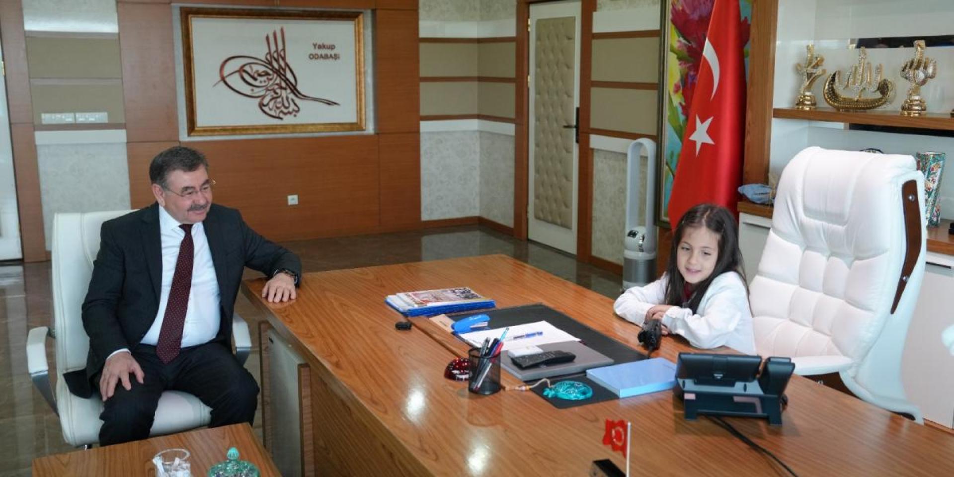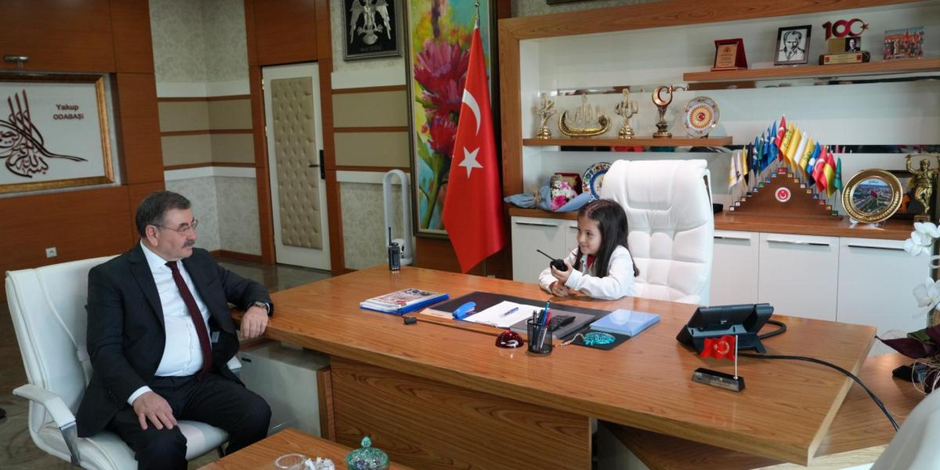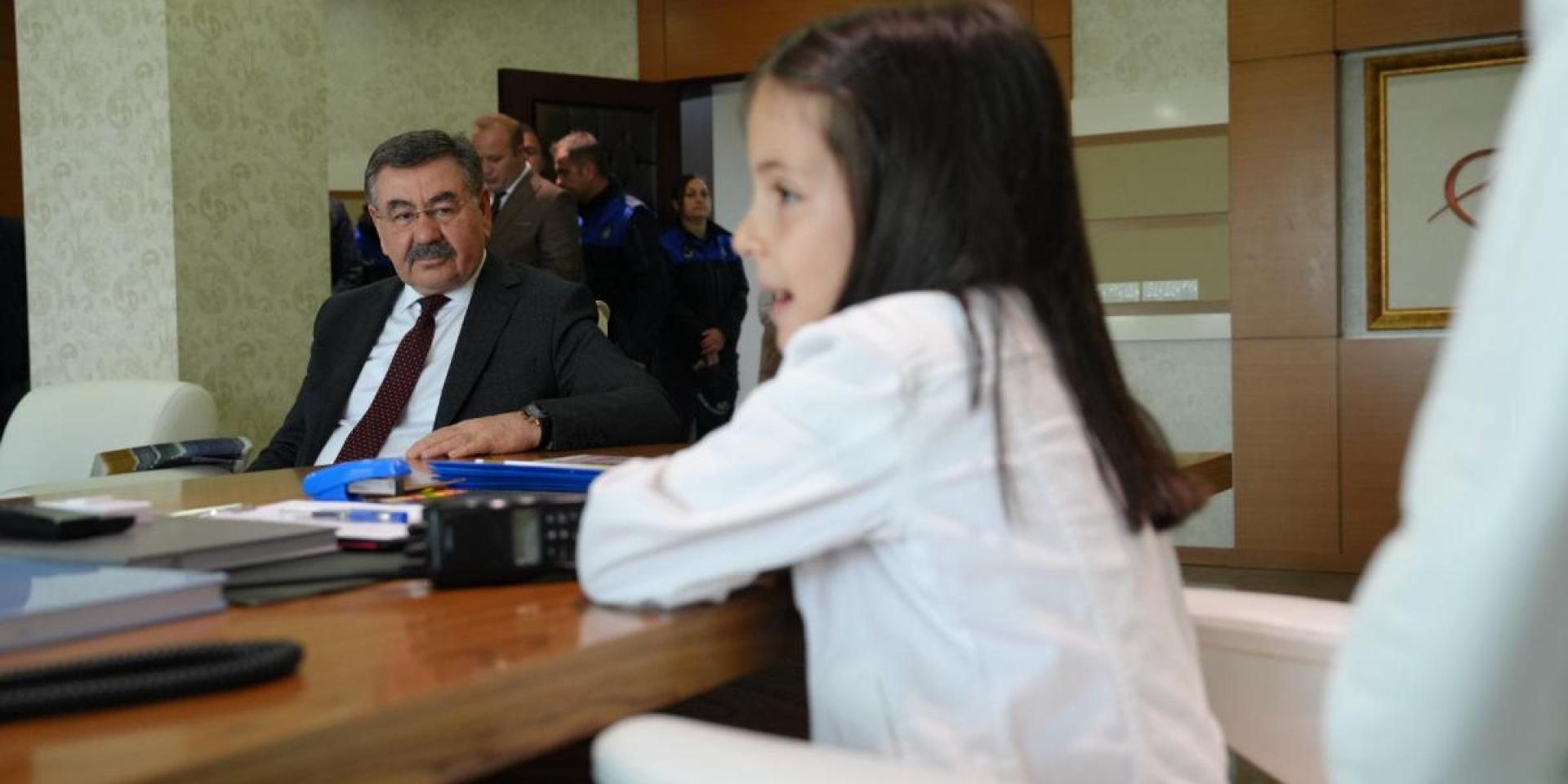 ilgilenerek sohbet etti. Bu anlamlı günde minik başkan Gölbaşı Belediyesi’nin