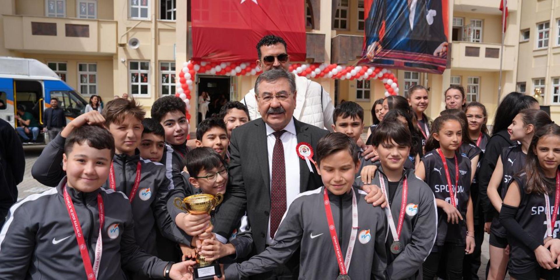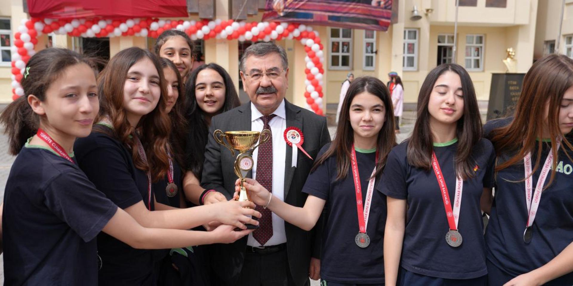 okullara Gölbaşı Kaymakamı Erol Rüstemoğlu tarafından kupa ve madalyaları