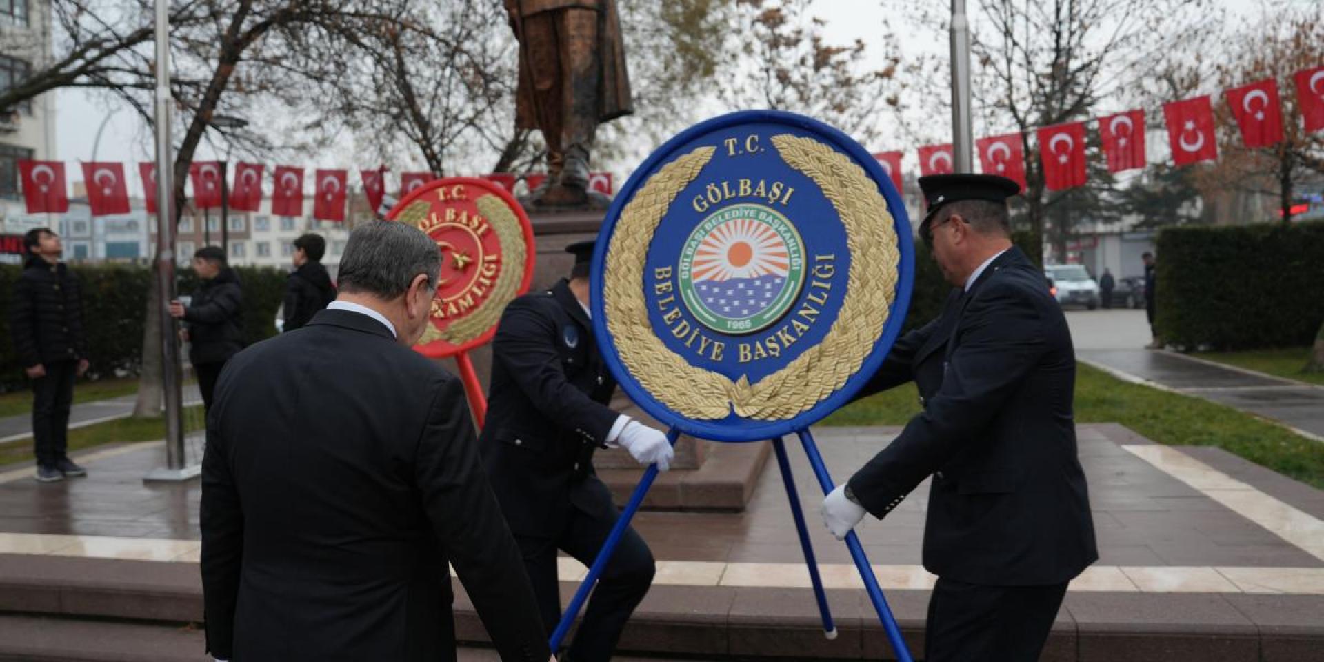 Tören, Gölbaşı Kaymakamı Erol Rüstemoğlu ve Belediye Başkanı Yakup Odabaşı’nın Atatürk Anıtı’na çelenk sunmasıyla başladı. Saygı duruşu ve İstiklal Marşı’nın ardından anma programı Mehmet Akif Ersoy Kongre ve Kültür Merkezi’nde devam etti.