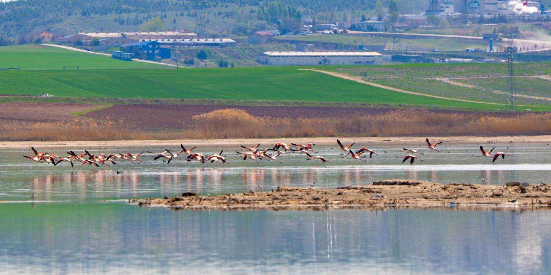 Doğal güzellikleriyle yerli ve yabancı turistlerin uğrak noktası olan Gölbaşı, her yıl olduğu gibi bu yıl da göçmen flamingolara ev sahipliği yapıyor. Gölbaşı’na gelen flamingolar sulak alanlarda adeta renk cümbüşü oluşturdu.