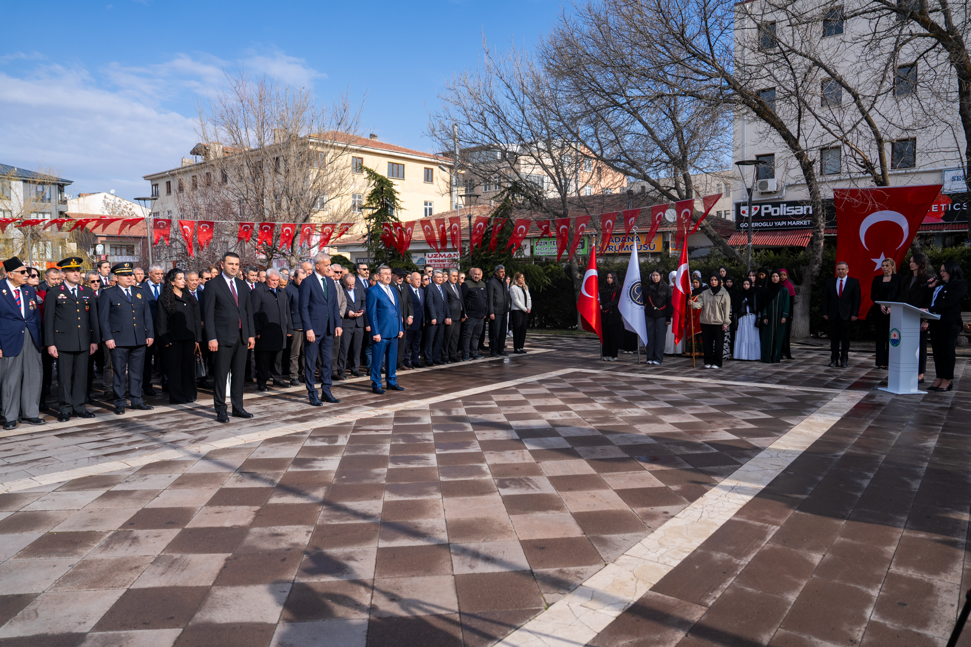 18 Mart Çanakkale Zaferi ve Şehitleri Anma Günü dolayısıyla Gölbaşı’nda düzenlenen programlarda şehitler dualarla anıldı. Törenler, çelenk sunumu, şehitlik ziyareti ve öğrencilerin sahnelediği anlamlı gösterilerle tamamlandı.