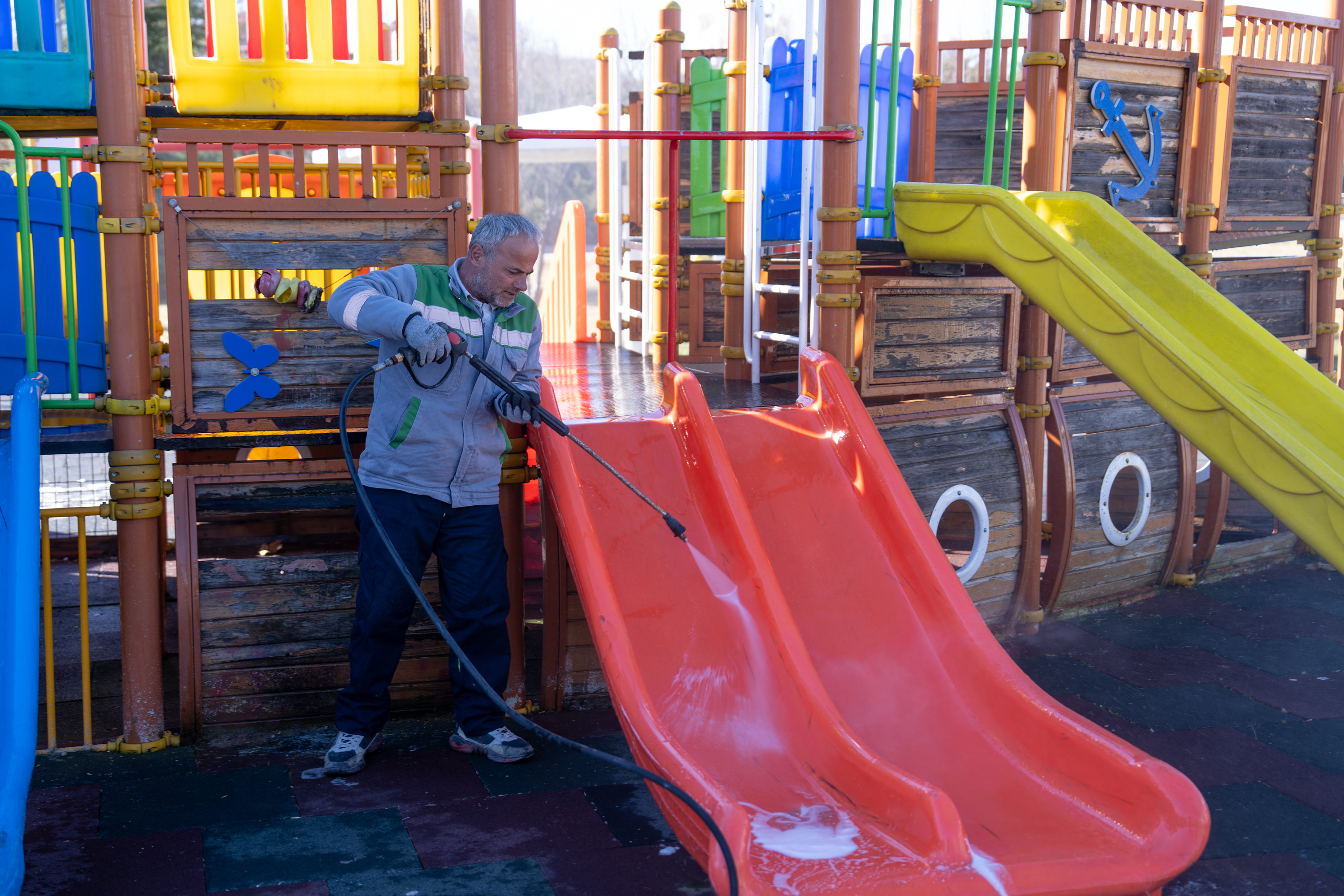 Bu kapsamda Alparslan Türkeş Parkı ve Atatürk Sahil Park’ta bulunan oyun grupları ile park alanları belediye ekipleri tarafından detaylı şekilde temizlendi. Oyun grupları tazyikli suyla yıkanarak hijyenik hale getirilirken, park içerisindeki yürüyüş yolları ve ortak kullanım alanları süpürge ve üfleme makineleriyle temizlendi.