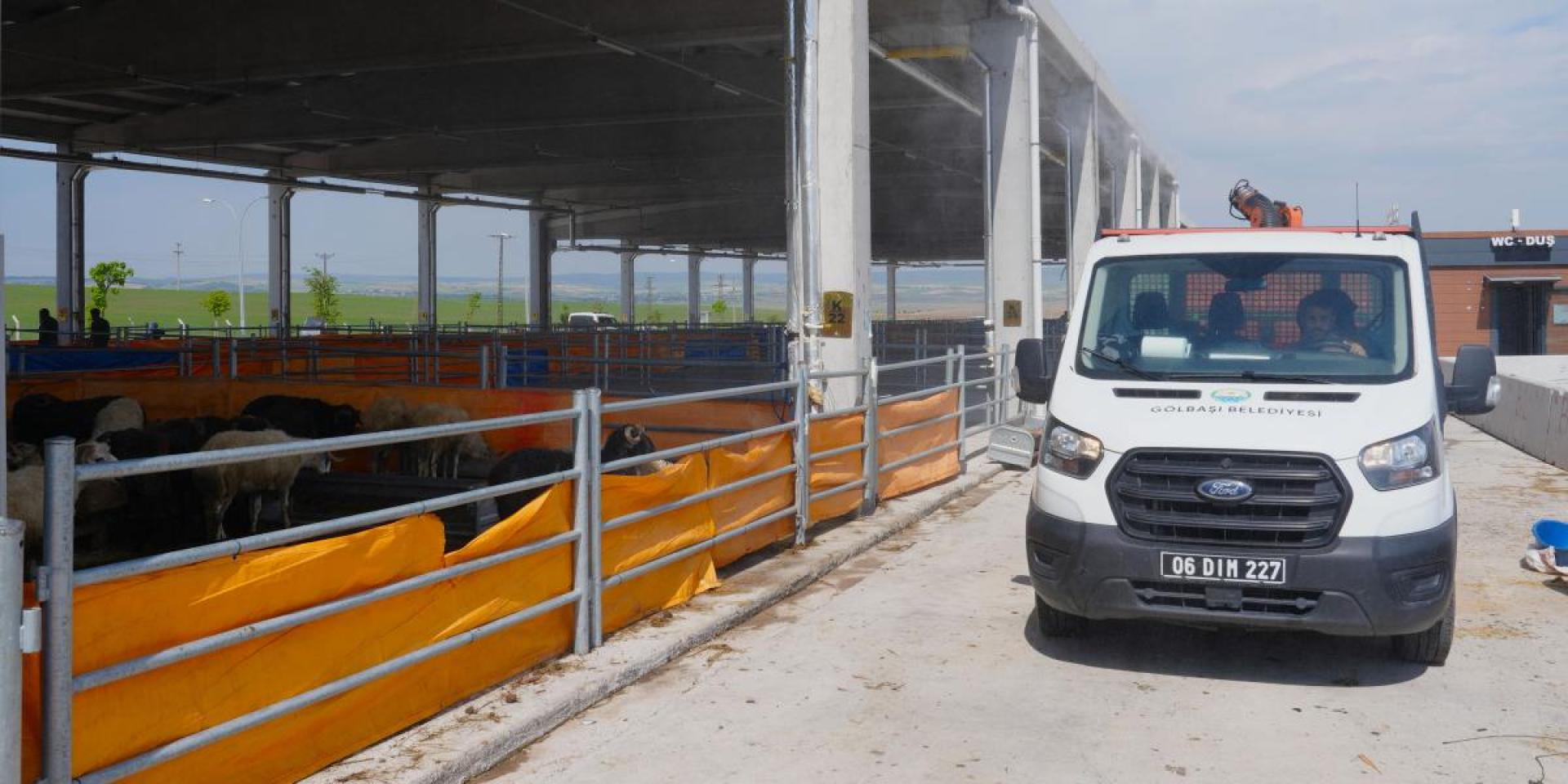 Kurban Bayramı’nın yaklaşmasıyla Konya Yolu üzeri 10. Km Oğulbey Mahallesi’ndeki Gölbaşı Belediyesi Kurban Satış ve Kesim Merkezi’nde hareketlilik başladı. Türkiye’nin dört bir yanından büyükbaş ve küçük kurbanlık hayvanlar merkeze gelirken, Gölbaşı Belediyesi ekipleri kurban pazarının daha bir hijyenik olması için çalışmalarına hız verdi. Çalışmalar kapsamında, kurban pazarının tüm alanları karasinek, haşere ve mikrop oluşumunun önüne geçilmesi hedefiyle detaylı bir şekilde ilaçlandı.