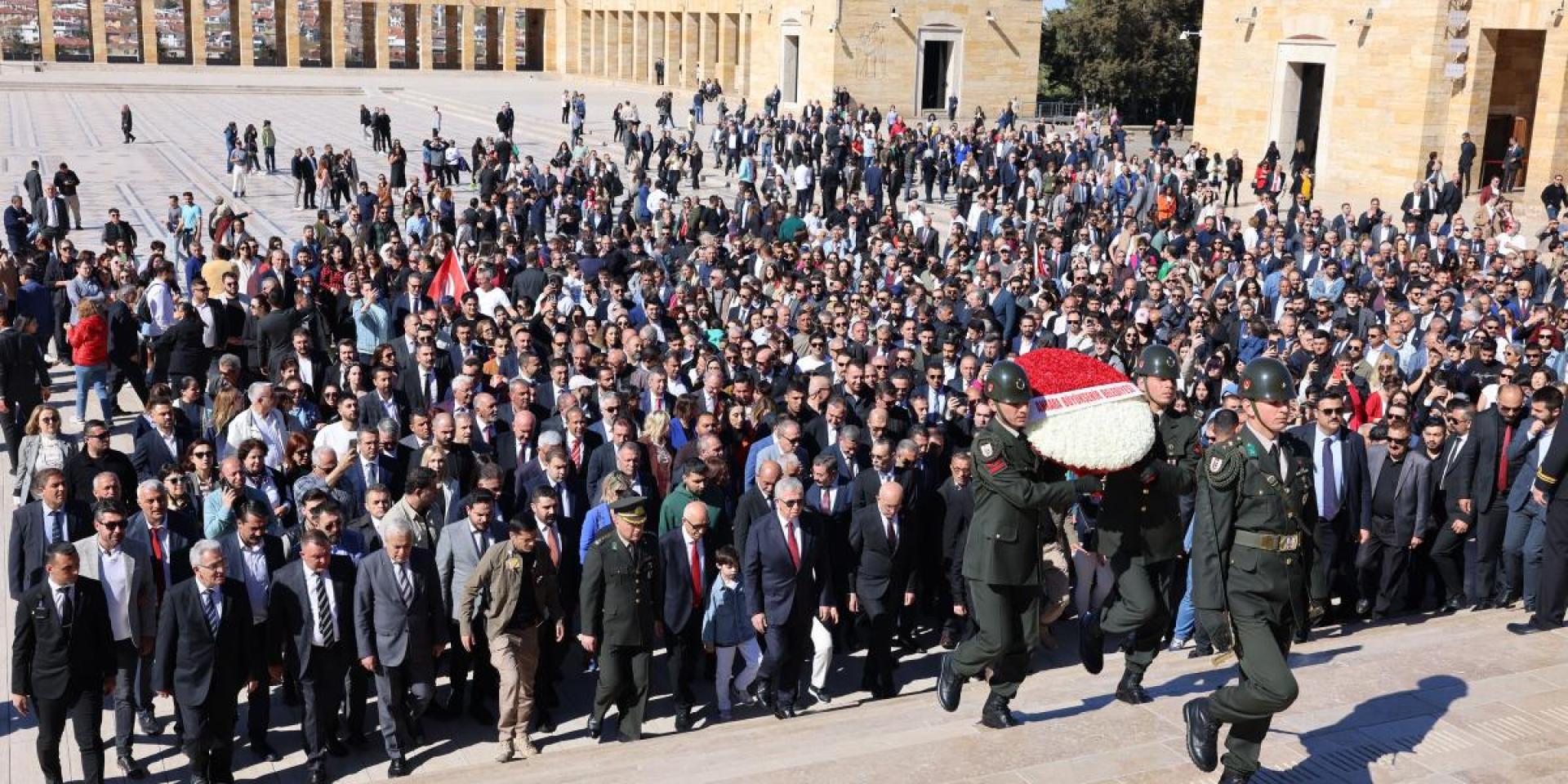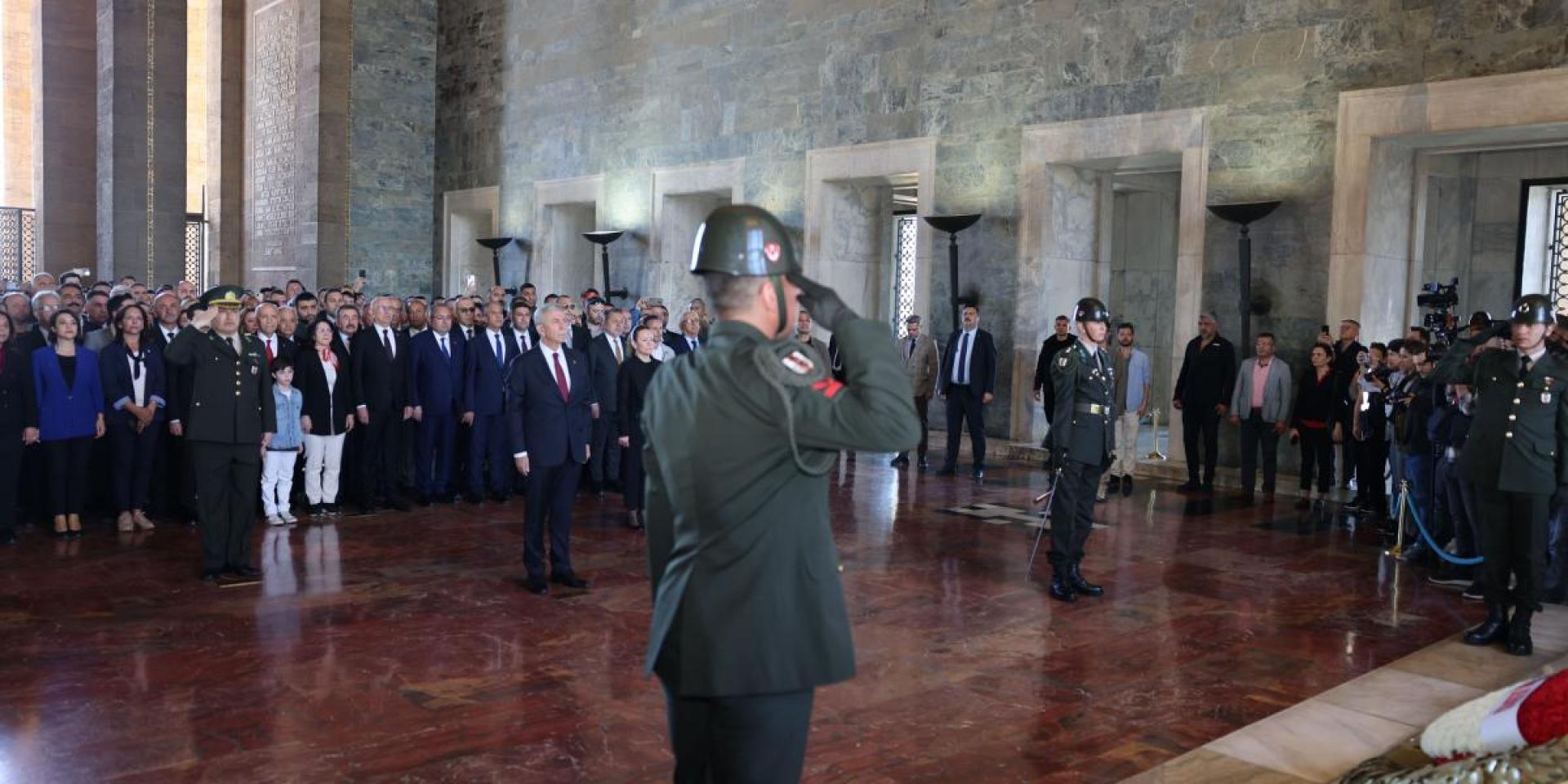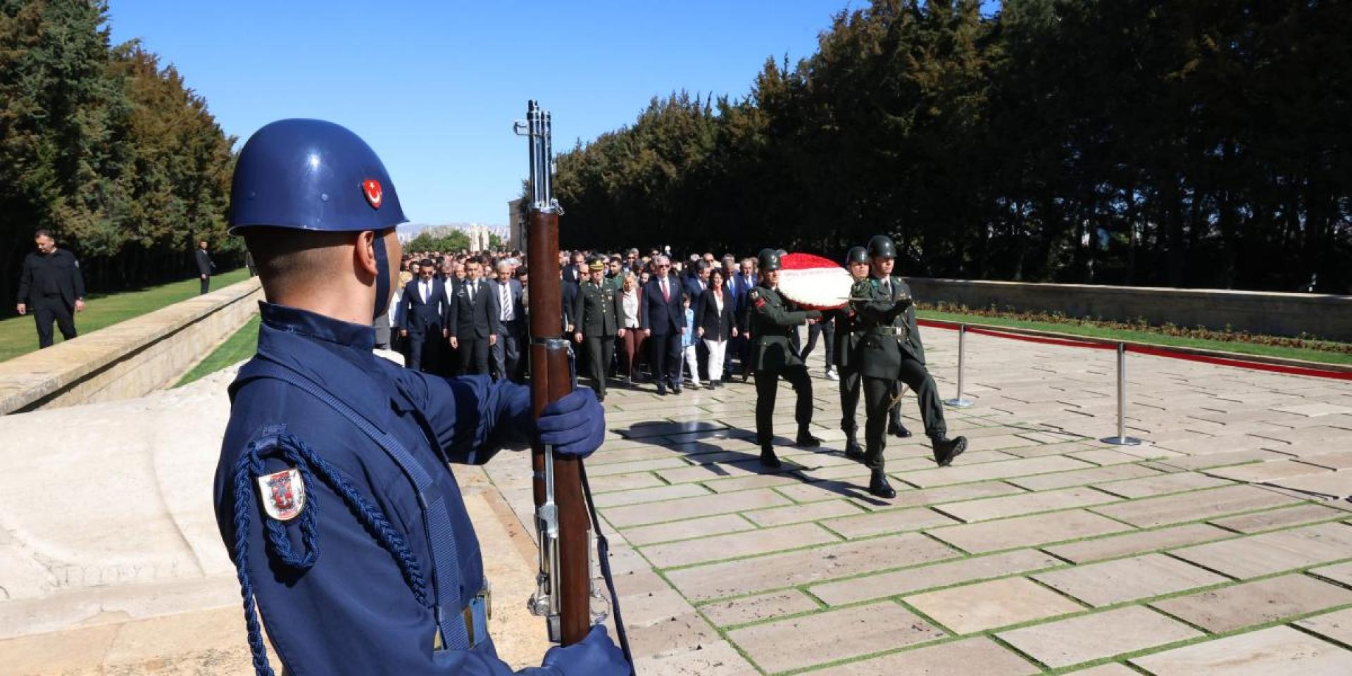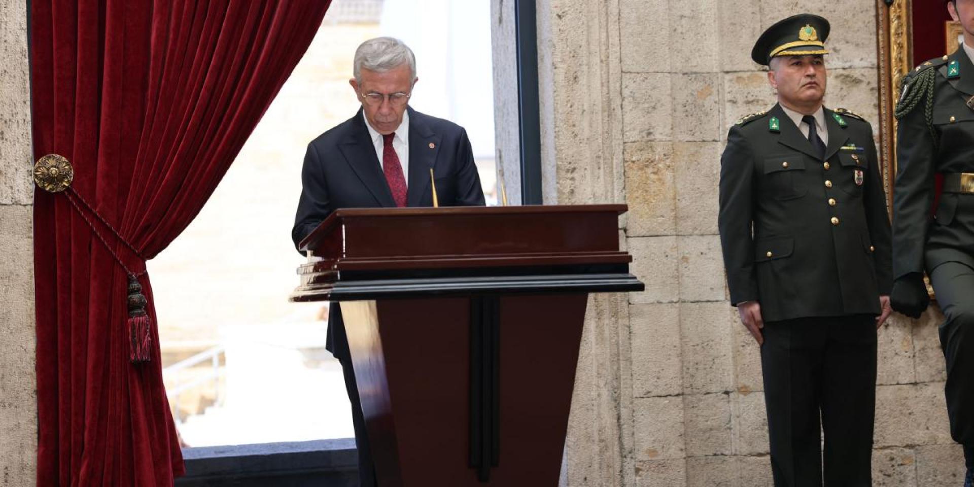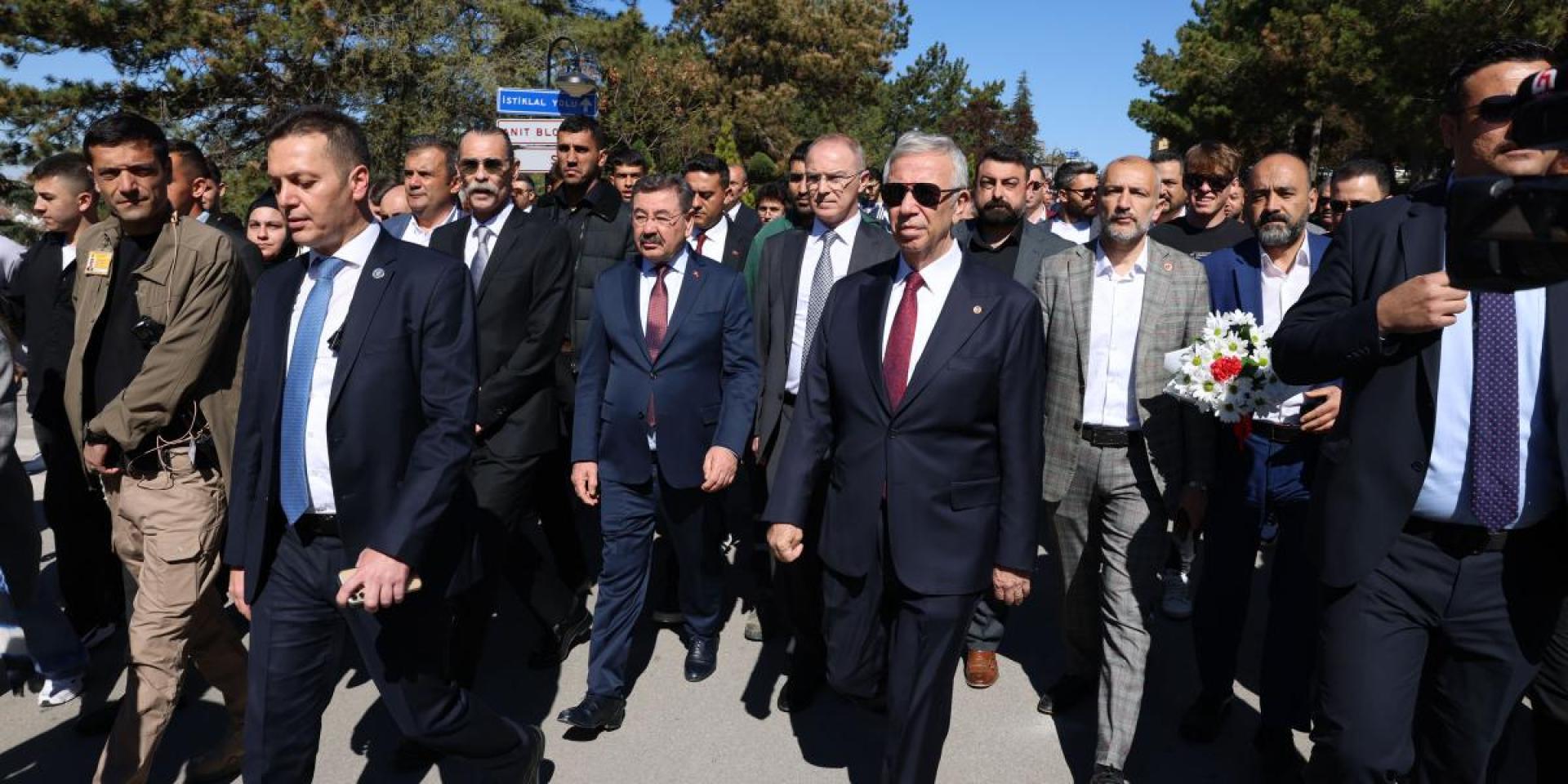 çıktı. Mansur Yavaş'ın mozoleye çelenk koymasının ardından saygı duruşunda