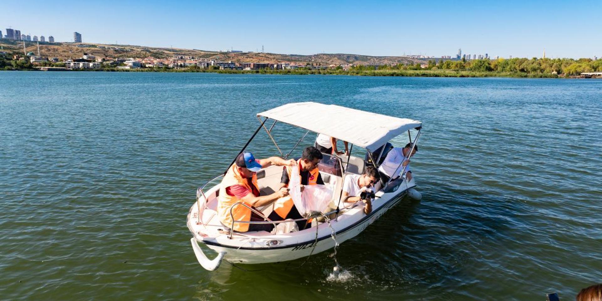 Belediyesi ile Ankara Büyükşehir Belediyesi işbirliğiyle su yüzeyindeki atıklar,