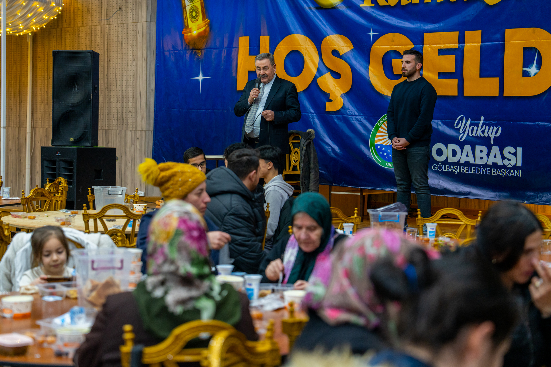 Gölbaşı Belediye Başkanı Yakup Odabaşı, Ramazan ayının ilk iftarını Zübeyde Hanım Aile Yaşam Merkezi’nde vatandaşlarla birlikte yaptı. Yoğun katılımın olduğu iftar programında Odabaşı, yemeklerin başına geçerek Gölbaşı Belediyesi aşevinde hijyenik koşullara özen gösterilerek hazırlanan iftar yemeklerini misafirlere ikram etti. Programda Ramazan ayının manevi atmosferi, paylaşma ve dayanışma ruhuyla hissedildi.